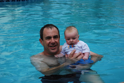 Okay, if you got time you can see what the past 2 months have been like since we've had Evan (view the video below). The picture above is on his actual 2 month birthday (yesterday). He's wearing a 3-6 month outfit and is about to bust out of it like the incredible hulk. He's crazy big! He's a good boy and last week he gave me a glimmer of hope... he slept through the night. From 10 pm to 4 am one night then the next night he went from 10 pm to 7 am (CRAZY). It felt good to have those stretches. Then we shot the whole thing and went to the pediatrician for his 2 month check up (4 shots and oral rotavirus vaccine). It screwed him all up and he is back to hibernating like a bear during the day. I can't blame him...it did seem pretty awful. Anyway, we're chugging along. He is smiling and follows me with his eyes. It's nice and now we're getting to the baby stages I like (did I ever mention I am not a fan of the newborn, although as far as newborns go, Evan was pretty sweet). So watch the video when you have a few minutes to kill... I actually post video from the hospital (nothing gross - I am so not like that and wouldn't allow that to be taped - although I did allow a student to view my birth because I had my epidural and was so focused on not throwing up I could have had a whole amphitheater of folks watching and would have never noticed). Anyway, enjoy!